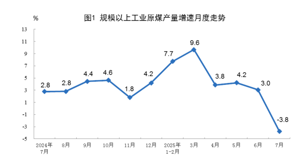 国家统计局:7月规上工业原煤产量3.8亿吨金风资本,同比下降3.8%国家统计局:7月规上工业原煤产量3.8亿吨,同比下降3.8%
