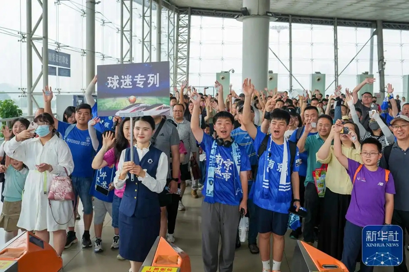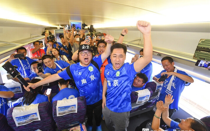 上周六和业众,南京队客场挑战淮安队,原本只是一场普通的省级联赛,却因为两地的特色美食“小龙虾”和“盐水鸭”被网友戏称为“江苏美食德比”,热度直接破圈。而为了满足球迷出行需求,铁路部门推出一系列服务举措,保障球迷乘坐高铁观看“苏超”。6月14日11时5分,南京站往返淮安东站的长三角首趟“苏超”球迷高铁专列G9253次开始运行,有近800名南京球迷乘坐专列前往淮安看球。