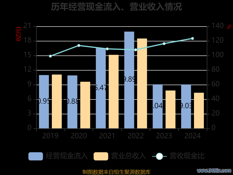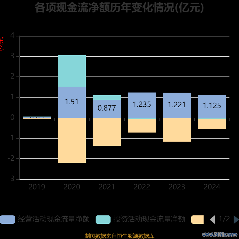 截至2024年,公司经营活动现金流净额为1.13亿元,同比下降7.82%;筹资活动现金流净额-5084.3万元,同比增加6439.43万元;投资活动现金流净额-435.81万元,上年同期为-143.64万元。