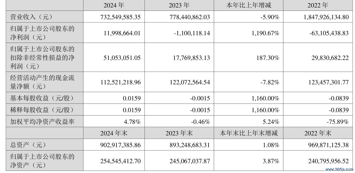 中证智能财讯 ST升达(002259)4月26日披露2024年年度报告。2024年,公司实现营业总收入7.33亿元,同比下降5.90%;归母净利润1199.87万元,同比扭亏;扣非净利润5105.31万元,同比增长187.30%;经营活动产生的现金流量净额为1.13亿元,同比下降7.82%;报告期内,ST升达基本每股收益为0.0159元,加权平均净资产收益率为4.78%。