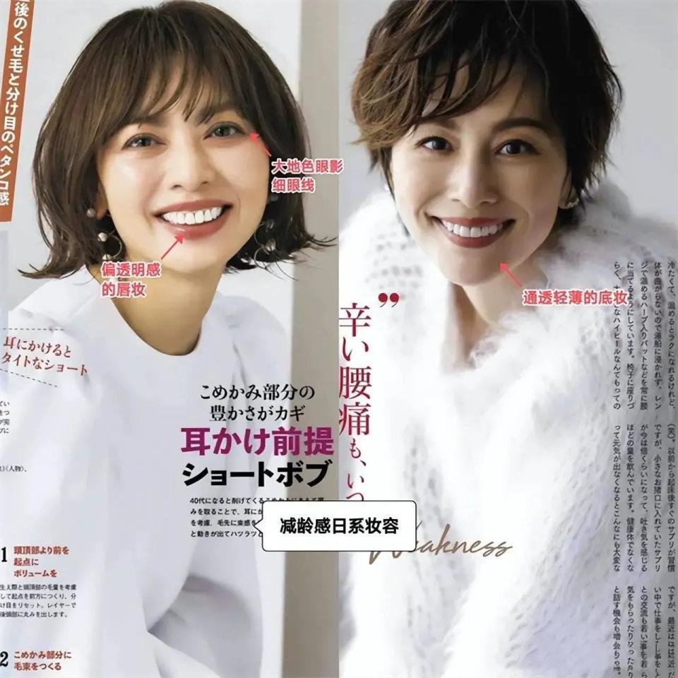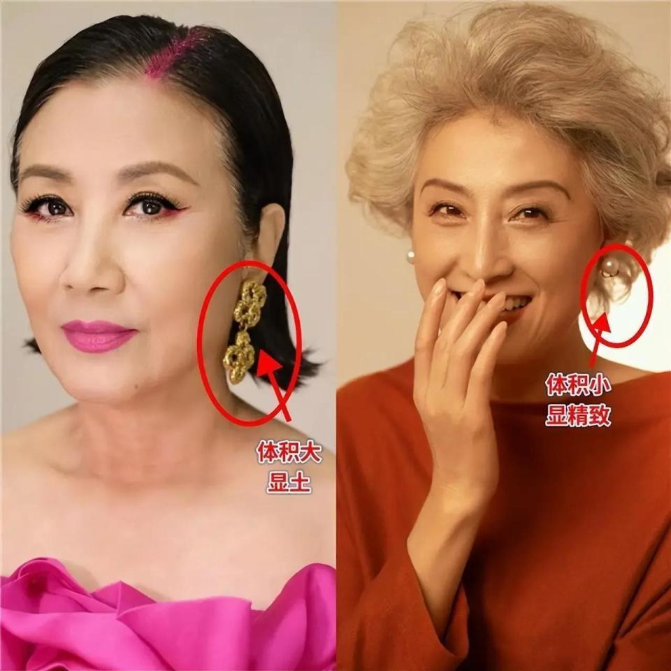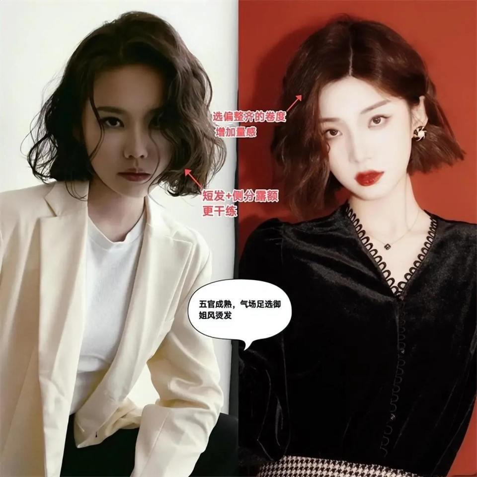 人到中年,很多女性可能头发的发量变少,或者是头发很容易出油,每天起床的时候头发就贴着头皮,这时候就会想着去烫那种小卷发造型,像下面左边的这一款卷发,这种卷发烫太过于密集,会秒变成大妈头,如果这个时候再画一款浮夸的妆容,那么更显老了。