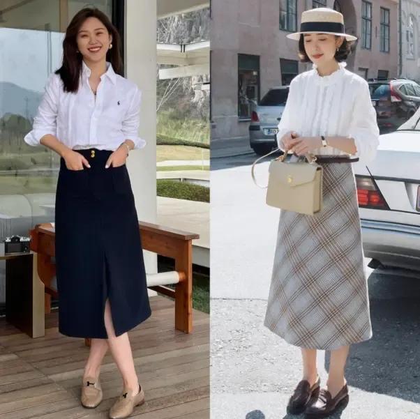 如果你是小个子女性,咱们可以选择小众设计的木耳边立领衬衫上衣搭配上条纹的a字半身裙,脚踩一双棕色的乐福鞋,头上戴了一款草帽,穿的时候把衬衫的衣角塞进裙子里面,勒上细细的腰带就能很好的提升腰线,显高又显瘦。